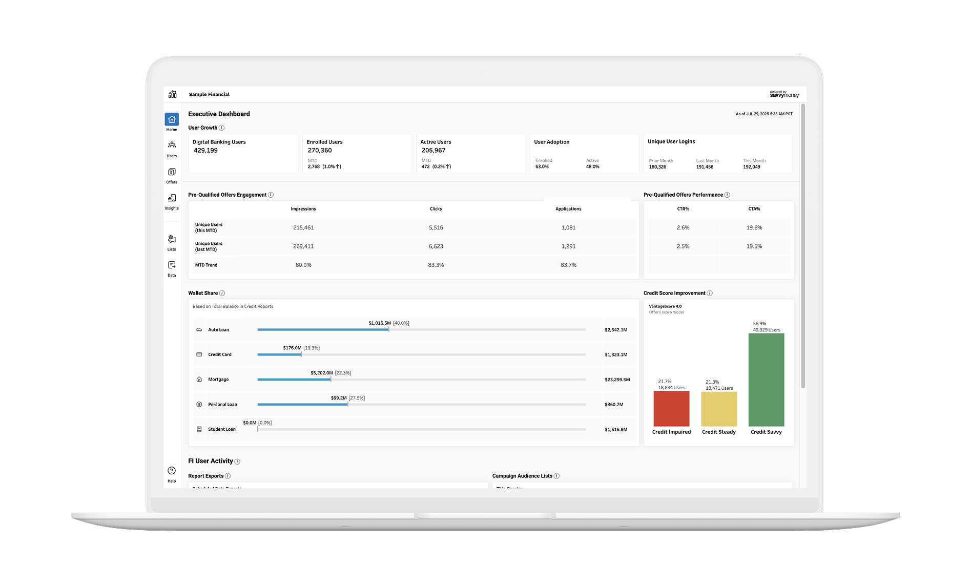 With SavvyMoney, we’re able to quickly translate credit data into targeted campaigns. Members have been receptive to our offers especially when they can see the personalized savings we can offer.