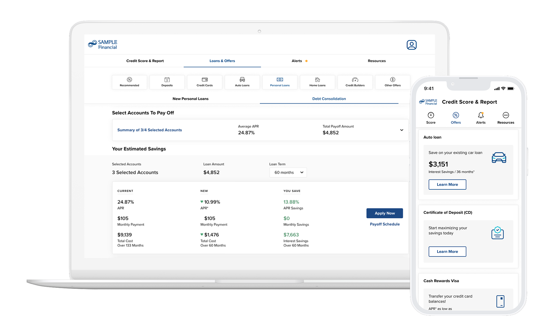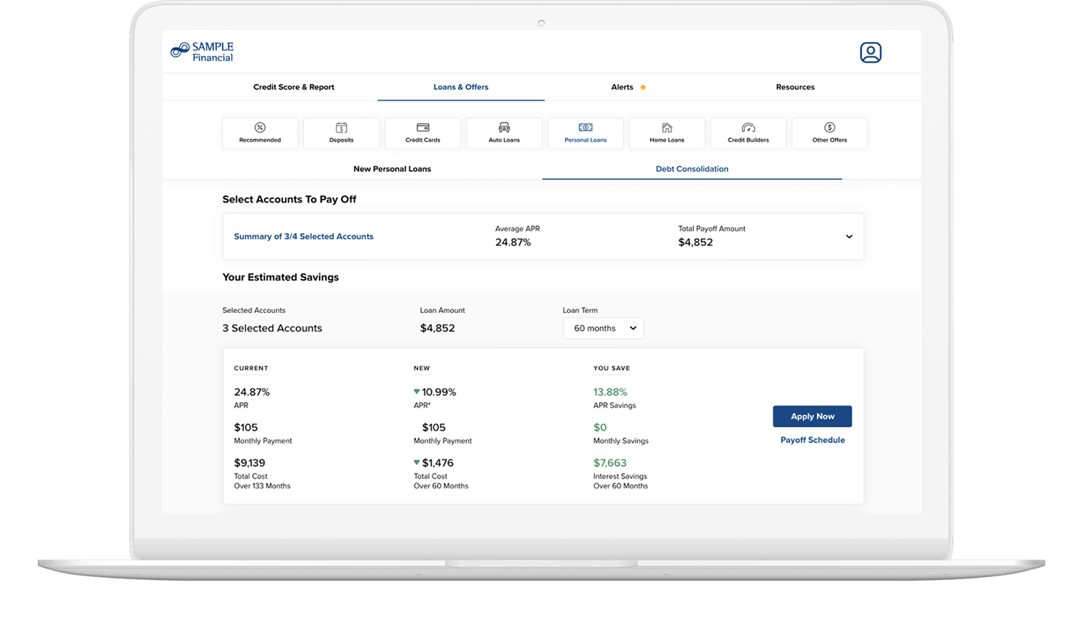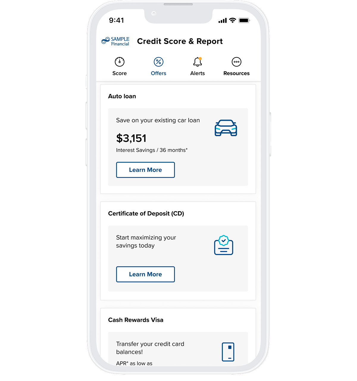 Consumers can easily take advantage of pre-qualified, money-saving offers with rates and terms clearly displayed right in your Credit Score experience.